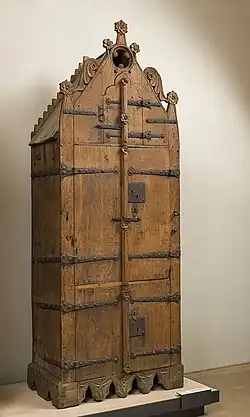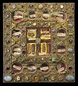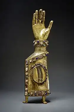 Skarbiec katedralny – Domschatz tworzy zbiór licznych dzieł malarstwa i rzemiosła artystycznego. Z malarstwa m.in. gotycki tryptyk z przedstawieniem Madonny z koralami i Dzieciątkia w otoczeniu świętych w typie Sacra Conversazione, obrazy : Męczeństwo św. Eufemii, Madonna z Dzieciątkiem w typie apokaliptycznym. Bogaty zespół relikwiarzy tworzą m.in. datowany na 1200 r. relikwiarz z kamieniem którym umęczono św. Szczepana, relikwiarz w kształcie dekorowanej tablicy, kameryzowany, filigranowy, z m.in. cierniem Chrystusowym i relikwiami Apostołów, czy trzy relikwiarze w kształcie ręki z 1225 (m.in. Św. Szczepana). Średniowieczne utensylia reprezentuje zespół XIII w. srebrnych i złotych kielichów, czy IX-wieczna patena z Bizancjum. Tapiserie m.in. wczesnoromańskie z Chrystusem w mandorli i Apostołami, Ostatniej Wieczerzą cechuje znajomość sztuki bizantyjskiej (połowa XII w.) Dworski charakter ma datowany na 1240 r. gobelin z wizerunkiem Karola Wielkiego. Spośród paramentów m.in. mitra z 1300, strój pontyfikalny z 2. poł XIII w. Ponadto XIV-wieczne antependium ze scenami męczeństwa św. Szczepana i św. Sykstusa, przenośny tryptyk z XIV wieku i wiele innych dzieł.