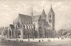 Gotycka katedra, zbudowana w całości z kamienia, trójnawowa, orientowana bazylika, z nawą poprzeczną, wysokim (27 m.) prezbiterium zamkniętym trójboczną absydą. Prezbiterium obiega ambit, do którego przylega od wschodu trójbocznie zamknięta kaplica Mariacka, która jest nakryta osobnym dachem. Na zewnątrz ściany są oszkarpowane, szkarpy ambitu są pokryte bogatą dekoracją kamieniarską i zwieńczone pinaklami.