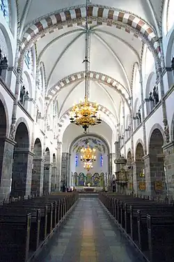 Drugą wieżą jest niższa, romańska Mariatårnet (Wieża Mariacka), natomiast trzecią wieżą jest sygnaturka na przecięciu naw.