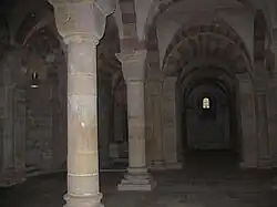 Krypta, najstarsza część katedry, została ukończona w 1039 a poświęcona w 1041. Nie jest to klasyczna krypta, lecz podziemny kościół z siedmioma ołtarzami umieszczonymi w małych apsydach, zarazem jedna z największych kolumnowych sal romańskich w Europie. 42 sklepienia krzyżowe spoczywają na 20 wolno stojących kolumnach o głowicach kostkowych, 36 półkolumnach i 14 ćwierćkolumnach. Wysokość sklepienia wynosi 7 m.