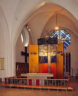 Nowoczesna nastawa ołtarzowa "Från mörker till ljus" (pol. "Od ciemności do światła") pochodzi z 2002 i jest dziełem artysty Bertila Valliena.
