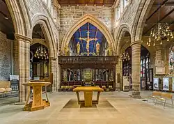 Kościół parafialny aż do 1888 roku. Duży wertykalny (Perpendicular Style) kościół z południową kruchtą (mającą dobrze wykutą bramę) i dużą zachodnią wieżą o 4 przęsłach z narożnymi przyporami i bardzo wysoką żabkowaną iglicą za gzymsem z żabkowanymi narożnymi szczytami; wczesny XV wiek, przebudowana podczas restauracji w latach 1858-1874 przez Sir George'a Gilberta Scotta, który odrestaurował całą zewnętrzną stronę kościoła do jego późnośredniowiecznego wyglądu: mur ciosowy ze schodkowymi przyporami poniżej żabkowanych szczytów arkadowego gzymsu; duże okna z kilkoma pulpitowymi maswerkami panelu, prezbiterium (obecnie chór muzyczny) z późnego XV wieku, kilka starszych prac wewnątrz obejmuje: filary nawy głównej z XII i XIII wieku oraz arkady i łuki w prezbiterium z początku XIV wieku. Drewniany dach zastępuje zawalone kamienne sklepienie. Rozszerzenia od strony wschodniej transeptu, prezbiterium i kaplicy w stylu retro w 1904 roku przez F.L. Pearsona prawdopodobnie na podstawie projektu J.L. Pearsona. Kamienny dach sklepieniowy i dobre drewniane lektorium. Lektorium z XVII wieku z nowoczesnym krucyfiksem zaprojektowane przez Sir Niniana Campera. Chrzcielnica z połowy XVII wieku; ambona z 1708 roku. Stalle datowane na XV wiek, niektóre z mizerykordiami. Piękna kolekcja tabliczek kościelnych na wystawie. Szafa organowa z 1743 roku. Pomnik Sir Lyona Pilkingtona z około 1700 roku, półleżąca postać w barokowym ułożeniu. Inne tablice pamiątkowe z XVIII i początku XIX wieku[1].