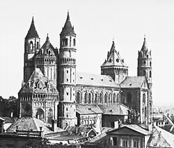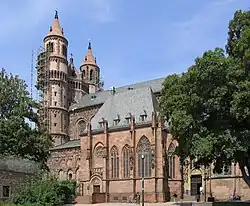 W 1003 r., za panowania biskupa Burcharda zaczęto wznosić nową świątynię jako siedzibę nowego biskupstwa założonego trzy lata wcześniej. Katedra otrzymała kształt trójnawowej bazyliki z transeptem i wieżą na skrzyżowaniu naw. Świątynię rozbudowano w latach 1110–1181. W międzyczasie, w 1122 r. podczas odbywającego się w mieście synodu Henryk V Salicki zawarł konkordat z papieżem Kalikstem II. Dzisiejszy kształt świątyni zbliżony jest do XII-wiecznego, choć obecny chór zachodni powstał w XIII w. W dobie gotyku kościół otrzymał kilka kaplic m.in. św. Anny i św. Jerzego. W XIV w. wzniesiono m.in. portal południowy.