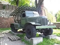 Szynowa wyrzutnia rakietowa montowana na podwoziach samochodów ZIS oraz zagranicznych dostarczanych z Zachodu. Rakiety M-13 montowane były w dwóch rzędach po osiem w każdym, M-13DD i M-20 tylko w jednym rzędzie, ze względu na dużą masę.