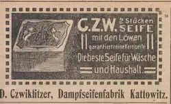 - ↑ Data założenia wytwórni mydła i wód kolońskich przez Dawida Czwiklitzera.