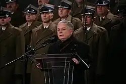 W swoim przemówieniu prezydent Kaczyński powiedział między innymi: „mocą mojej decyzji, w ramach obowiązków przewidzianych przez Konstytucję, mocą decyzji Pana Ministra Obrony Narodowej wszyscy oficerowie i funkcjonariusze zamordowani w Katyniu zostaną awansowani o jeden stopień. Można powiedzieć, że dzisiaj, po przeszło 67 latach ten akt nie ma już znaczenia, ale myślę, że to pomyłka. Ten akt to akt pamięci, akt pamięci w stosunku do naszych bohaterów, w stosunku do ich rodzin i przede wszystkich w stosunku do całego naszego narodu”[5].