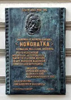 - 1 2 3 Łukasz Kaczyński, (Ad.): Tablica upamiętniająca kawiarnię Honoratka. [w:] Portal „Dziennika Łódzkiego”. dzienniklodzki.pl > Wiadomości [on-line]. Polska Press Sp. z o.o., 2012-05-23. [dostęp 2016-02-29].
