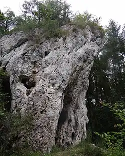 W tym samym lesie, przy jego obrzeżu i na północ od Kazalnicy Suliszowickiej znajduje się Dębia Skała[3].