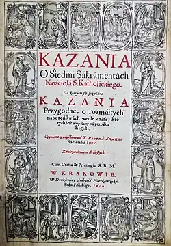 - Kazania seymowe, [w:] Kazania na niedziele y święta całego roku x. Piotra Skargi [...], w Krakowie: w drukarniey Andrzeia Piotrkowczyka, 1597. Reprodukcja cyfrowa w serwisie Polona.pl