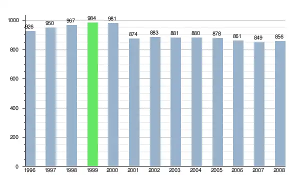 Zmiany liczby ludności w miejscowości Kazimír od 1996 roku[8].