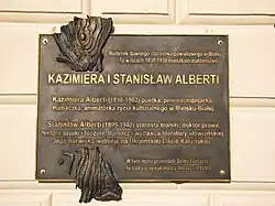 - 26 listopada 2009 na budynku pod adresem plac Wojska Polskiego 11 w Bielsku-Białej[9], gdzie od 1930 zamieszkiwali Stanisław i Kazimiera Alberti, została odsłonięta tablica pamiątkowa honorująca małżeństwo[10].