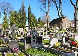W latach 60. XX wieku został rozebrany pomnik poległych w I wojnie światowej. Jego centralny fragment został zabezpieczony na sąsiedniej posesji, a pozostałe płyty z napisami posłużyły m.in. jako kładka nad przydrożnym rowem albo podpora dla filarów ogrodzeń. Na dawnym miejscu pomnika postawiono przystanek autobusowy[39].