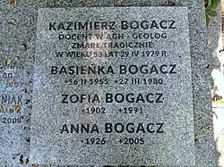 - 1 2 Zarząd Cmentarzy Komunalnych w Krakowie. Internetowy lokalizator grobów. Kazimierz Bogacz. rakowice.eu. [dostęp 2016-12-31].