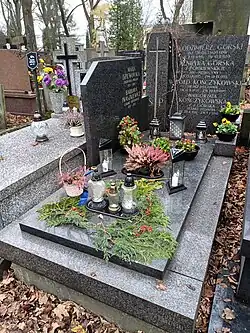 Spoczywa na cmentarzu Powązkowskim w Warszawie (kwatera 284a, rząd 1, grób 3)[2].