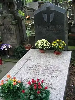 - ↑ Cmentarz Stare Powązki: KAZIMIERZ KUMANIECKI, [w:] Warszawskie Zabytkowe Pomniki Nagrobne [dostęp 2018-11-12].