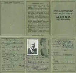 - Erlaubniskarte – legitymacja wydawana przez okupanta śpiewakom, muzykom, księgarzom, fotografom itp.