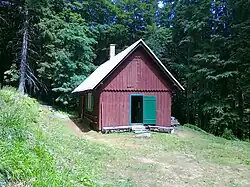 - ↑ Zdeňka Jordanová, Lovecké chaty v Jeseníkách. Jelení chata na Švycárském chodníku [online], lovecke-chaty-v-jesenikach.cz [zarchiwizowane z adresu 2023-03-01] (cz.).