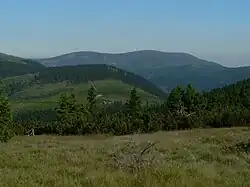 ![]() Widok na szczyty Masywu Keprníka (od lewej: Červená hora, Vozka, Keprník i Šerák) (2010 rok) | |