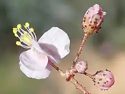 - Skupione na szypułkach w szczytowych, baldachokształtnych kwiatostanach wierzchotkowych. W pąku jest 5 listków okwiatu, ale od trzech do czterech z nich rozwija się na podobieństwo płatków. Pręcików jest od 5 (rzadko 3) do 15 (rzadko 20). Zalążnia górna powstaje z 3 do 5 owocolistków, na których znajdują się liczne zalążki. Szyjki słupka brak. Znamię jest grzebieniaste. Zarówno znamię jak i pylniki są zwykle żywo zabarwione[2].