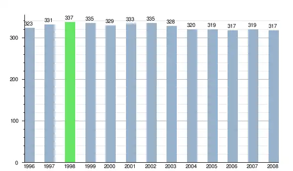 Według danych z dnia 31 grudnia 2012 roku, wieś zamieszkiwało 312 osób, w tym 157 kobiet i 155 mężczyzn[6].
