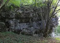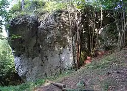 - ↑ Nazwa jaskini podana na tabliczce obk szlaku turystycznego.