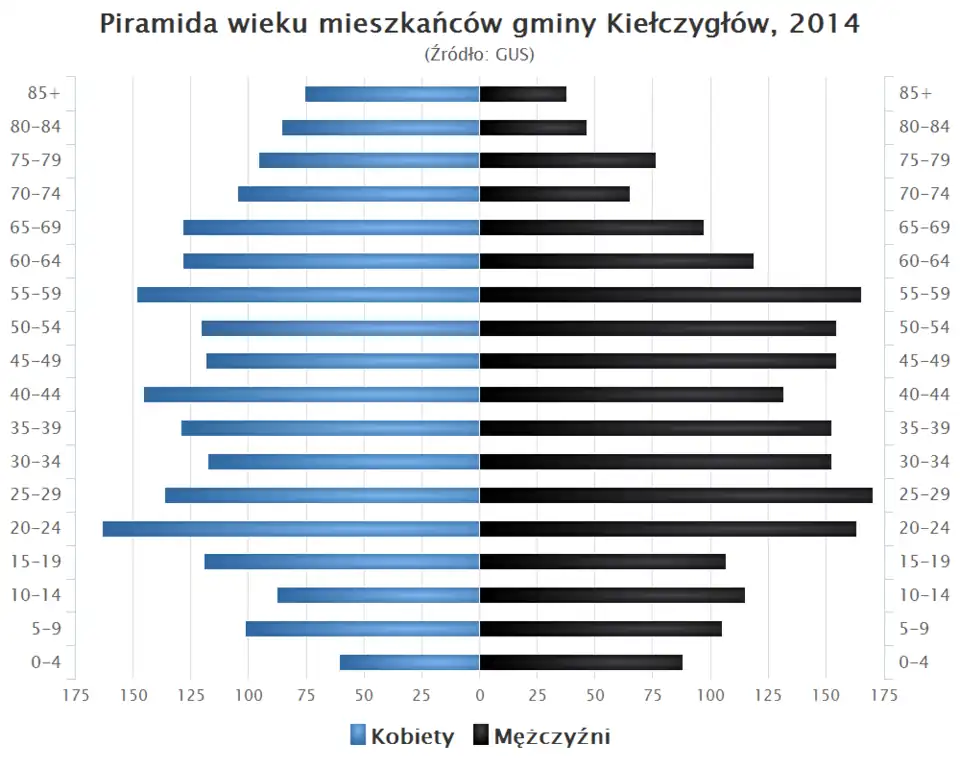 - Piramida wieku mieszkańców gminy Kiełczygłów w 2014 roku[1].