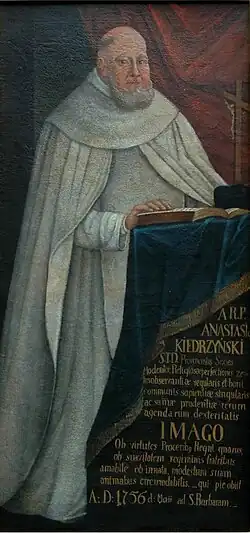 - Anastazy Kiedrzyński, właściwie Piotr Kiedrzyński (1676–1756) – duchowny katolicki, zakonnik OSPPE, prezbiter, doktor teologii, prowincjał Zakonu Świętego Pawła Pierwszego Pustelnika, przeor klasztoru wieluńskiego, na Jasnej Górze (1716–1719) oraz na Skałce w Krakowie (1722–1728). Był synem Ludwika i Zofii Kiedrzyńskich[18].