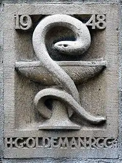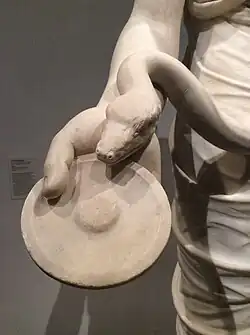 W sztuce przedstawiany jest zwykle w formie kielicha (symbolizuje zdrowie) bez ozdobień, z oplatającym go wężem (ze względu na swe linienie – „odradzanie się” – symbolizuje ciągłą samoodnowę życia, ozdrowienie, długowieczność, uzdrawianie)[1][2]. Według mitologii greckiej czara (lub kielich) i wąż należały do atrybutów bogini zdrowia, Higiei[3][1][4].