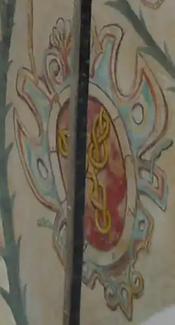 Kietlicz II : W polu czerwonem; trzy złote sznury w ósemkę złożone: dwa i jeden, w środku tarczy stykające się. Klejnot: trzy pióra strusie.