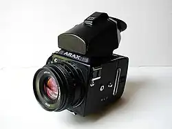 Kopia aparatu Hasselblad 1600F/1000F, zwana z tego powodu "Hasselbladzki". Wyglądem zdecydowanie przypomina inne średnioformatowe aparaty.