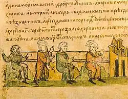- ↑ An Armenian historian of the seventh century, Zenob Glak, knew of a similar legend concerning the founding of the city of Kuar (Kiev) in the land of Poluni (Polianians) by three brother Kuar, Mentery, and Kherean. [w:] Medieval Russia's epics, chronicles, and tales. 1974; Similarly to Nestor's story about Kiy, Shchek and Khoriv, the Armenian legend of Kuar and his brothers says (in the 6th or in the 7th century). [w:] Киев, анциент анд модерн киты, 1983.