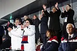 - ↑ Maciej Orłowski: Zimowe igrzyska: Wiceprezydent USA opuścił kolację z formalnym przywódcą Korei Północnej. 2018-02-09. (pol.).