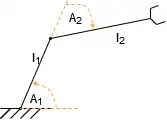 Można także w przypadku prostego manipulatora wykorzystać funkcje trygonometryczne do wyznaczenia punktu końcowego.