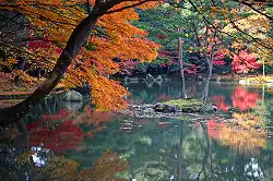 - ↑ M.in. polichromie na ścianach Chishaku-in w Kioto.