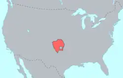 ![]() Mapa języków Indian w stanie Oklahoma. Kiowa - seledynowy | |