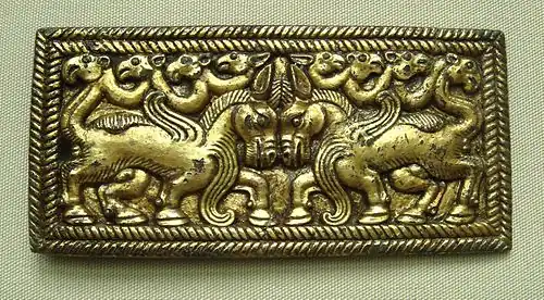Klamry bywają niekiedy kunsztownie zdobione (jak na fotografii z prawej u góry przedstawiającej klamrę z Ordos).