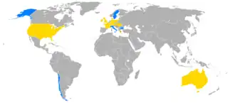 | 3. | Australia i Oceania | 2 | 0 | 0 | 2 |