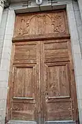 Do głównych drzwi kościoła prowadziły szerokie, proste schody o 25 stopniach, podzielone podestami. Zostały rozebrane w XX wieku. Drzwi główne, utrzymane w stylu greckim, flankowane są przez dwie kolumny z korynckimi kapitelami podtrzymującymi fryz, zwieńczone są trójkątnym frontonem. Drzwi są ozdobione rzeźbami. Pochodzą z początku XVIII wieku.