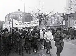 W 1989 roku do Berdyczowa przyjechał ojciec Serafin Tyszko, który zamieszkał na stancji w domu prywatnym i rozpoczął pracę duszpasterską. W 1990 roku, jeszcze w czasach istnienia Związku Radzieckiego, na ulicach miasta i pod siedzibą władz mieszkańcy zorganizowali kilka demonstracji, w których żądano zwrotu klasztoru i kościoła. Brali w nich udział, obok katolików, także duchowni i wierni prawosławni. W 1991 roku grupa około 200 osób okupowała dolny kościół, śpiąc w nim przez kilka tygodni[27].