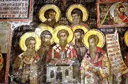 - ↑ Elka Bakalova: Siedmiu Świętych Mężów w sztukach pięknych. W: Skowronek Małgorzata, Georgi Minczew: Uczniowie Apostołów Słowian siedmiu Świętych Mężów. Kraków: Collegium Columbinum, 2010, s. 49, seria: Bezdroża. ISBN 978-83-7624-037-4.
