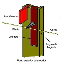 W instrumencie tym struny zostają wzbudzone poprzez mechanizm skoczków zaopatrzonych w tzw. „piórka”, wykonane z dutki piór ptasich, twardej skóry lub współcześnie z tworzyw sztucznych. „Piórka” wprawione w ruch za pomocą mechanizmu klawiszowego szarpią struny naciągnięte nad płytą rezonansową[1]. W typowej formie wykształconej w XVI wieku klawesyn miał najczęściej co najmniej podwójny naciąg strun, oraz jeden, lub – podobnie jak w organach – dwa manuały (klawiatury). Naciskając jeden klawisz można było wydobyć jednocześnie dźwięk z jednej, dwóch lub nawet kilku strun, które również transponowały w interwale oktawy. Główny system strun strojono w stroju naturalnym (8' – rejestr ośmiostopowy) i dublowano. W instrumentach większych, posiadających dwa manuały i więcej systemów strun stosowano także struny strojone oktawę wyżej (4' – rejestr czterostopowy) bądź niezwykle rzadko o oktawę niżej (16' – rejestr szesnastostopowy). W brzmieniu rejestr ośmiostopowy odpowiadał wysokości dźwięku zapisanej w nutach, zaś czterostopowy rejestr transponował oktawę w górę. Przykładowo: dźwiękowi c1 („c razkreślne”) w zapisie nutowym, zagranym na systemie strun w rejestrze 4' odpowiadał brzmiący ton c2 („c dwukreślne”). Rejestr 16' transponował analogicznie – o oktawę w dół.