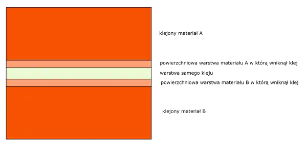 - wytrzymałość mechaniczna samej warstwy kleju – kohezja – ma to znaczenie tylko w przypadku tych klejów, które taką warstwę tworzą, zależy ona od struktury chemicznej kleju