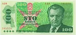 - ↑ 79/1989 Sb. Vyhláška federálního ministerstva financí o vydání bankovek po 100 Kčs [online], Zákony pro lidi [dostęp 2020-09-24] (cz.).