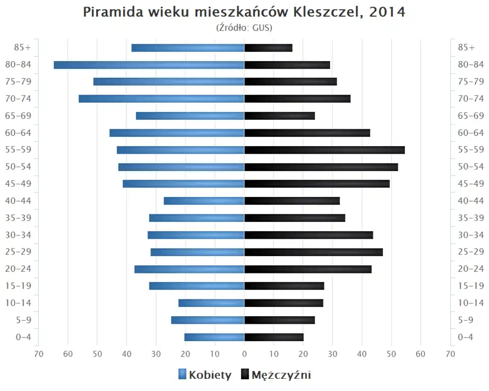 - Piramida wieku mieszkańców Kleszczel w 2014 roku[11].