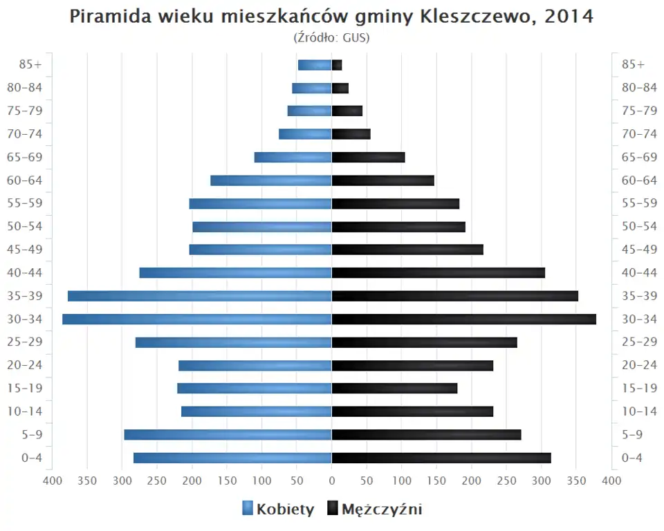 - Piramida wieku mieszkańców gminy Kleszczewo w 2014 roku[1].