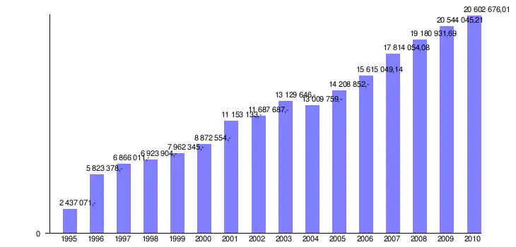 Rysunek 1.2 Wydatki ogółem w Gminie Klimontów w latach 1995-2010 (w zł)[3]