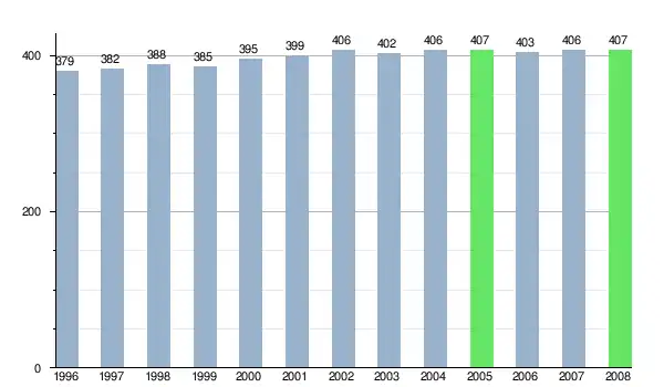 Według danych z dnia 31 grudnia 2012, wieś zamieszkiwało 418 osób, w tym 238 kobiet i 180 mężczyzn[7].