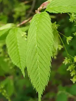 - Eliptyczne, długości 8 do 12 cm, podwójnie piłkowane, jesienią przebarwiają się na żółto.