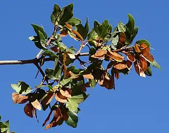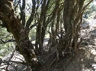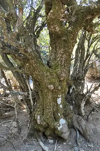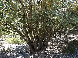 - Krzew lub drzewo dorastające do 12 m wysokości, pień o średnicy do 50 cm[5]. Częste są formy wielopniowe.