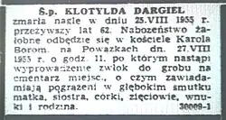 - ↑ W Krakowie przebywała najstarsza córka Dargielowej – Irena oraz młodsza – Krystyna, zob. tekst Z. Filipowicza, Z dziejów suwalskiego drukarstwa, s. 17.